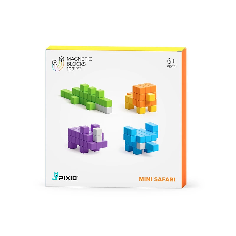 Youβll get 137 PIXIO blocks in 6 colors. Grab them and get to work on 4 tropical critters. Who knows, a little green alligator, powerful orange lion, or even a chunky violet rhino could show up on your table, looking to play with you.