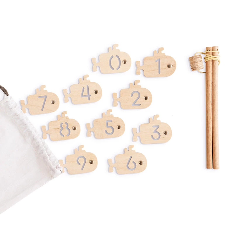 This quality-crafted wooden submarine and fishing rods game set with magnets is great for playtime with friends or family. Submarines with numbers help develop your child’s imagination, spatial thinking, fine motor skills, concentration, and early math skills. It comes with a linen bag for easy travel or storage.