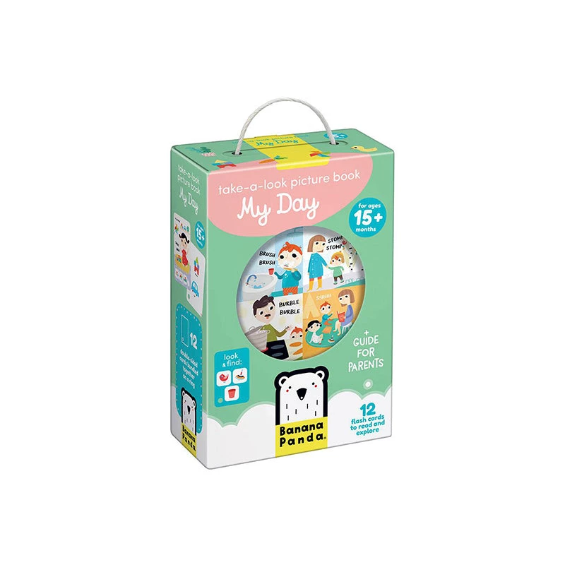 Take-a-look Picture Book My Day was created to encourage children aged 15 months and up in creative reading and exploring the world. 12 large, double-sided cards offer a friendly and accessible approach to concepts that are familiar to toddlers by presenting well-known objects and events happening every day.