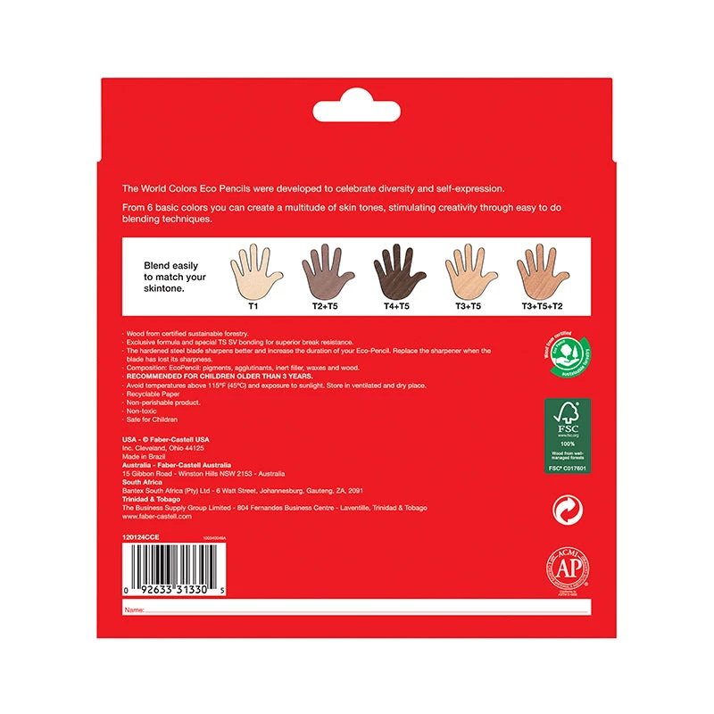 Developed to celebrate diversity and self-expression. Skin tones developed by makeup artists. Includes 3 super soft and blendable duo tone pencils. Pencil wood made from certified sustainable forestry.