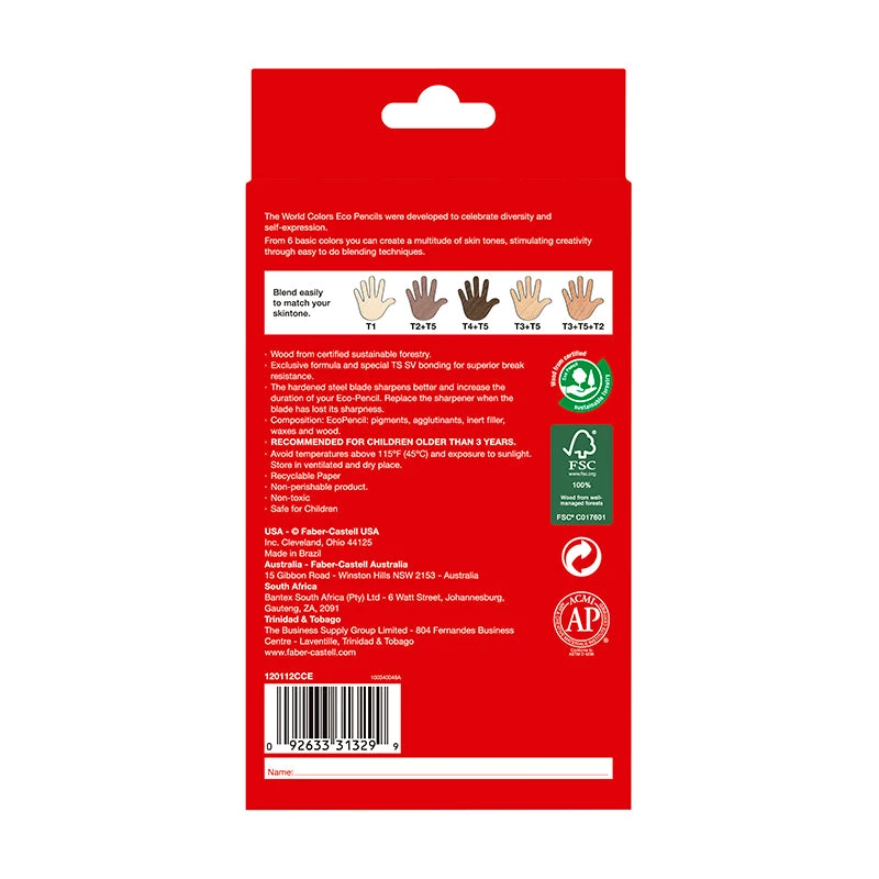 Developed to celebrate diversity and self-expression. Skin tones developed by makeup artists. Includes 3 super soft and blendable duo tone pencils. Pencil wood made from certified sustainable forestry.
