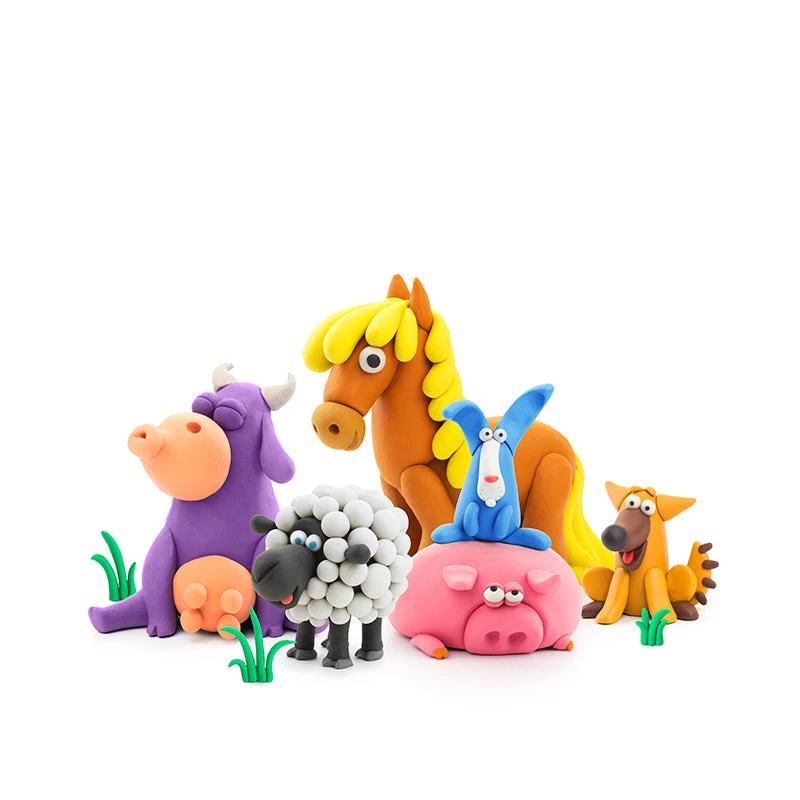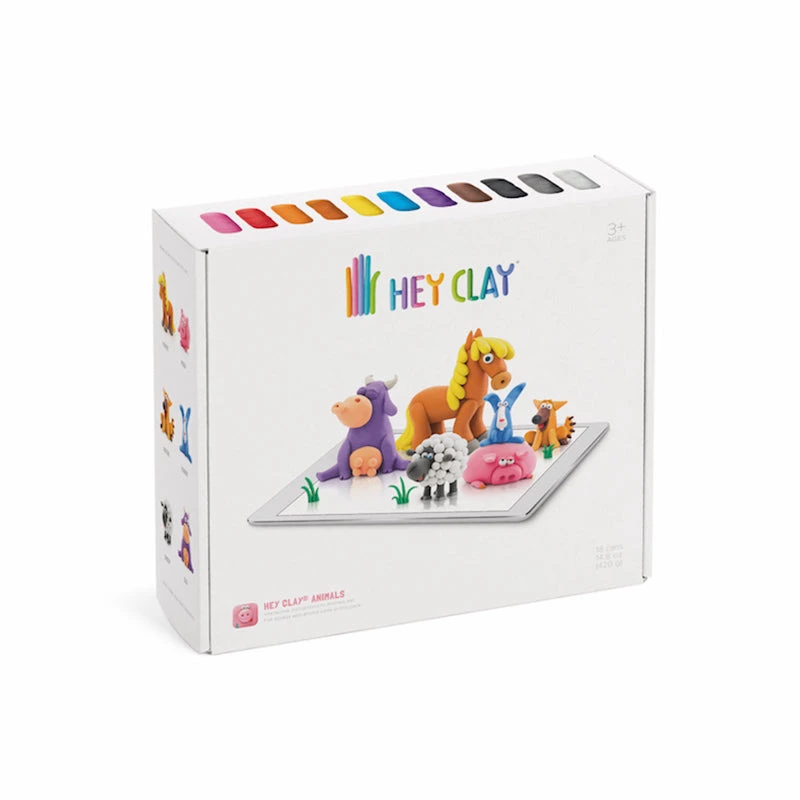 Become a professional clay artist! The 18 included cans of clay are soft, lightweight, non-sticky, nontoxic, and stain-free โ Perfect for young artists taking their first step into the magical world of clay creativity. The fun starts once you download the free app and gain full access using the promo code included in the box. Pick one of the six animal characters โ Piggy, Horse, Cow, Doggie, Sheep, or Rabbit. Then, follow along with the interactive 3D step-by-step instructions to masterfully mold it, one simple shape at a time. As kids create, they learn useful techniques โ rolling spheres, cylinders, facial features, textures, and more โ until pretty soon, they canโt wait to invent their own characters! Jumpstart your young artistโs new career with the wild and wondrous excitement of the Hey Clay Animals set. Includes 18 cans of modeling clay (0.7 ounces each) in various colors. The app is available at the Apple App Store and Google Play. Ages 3 years +