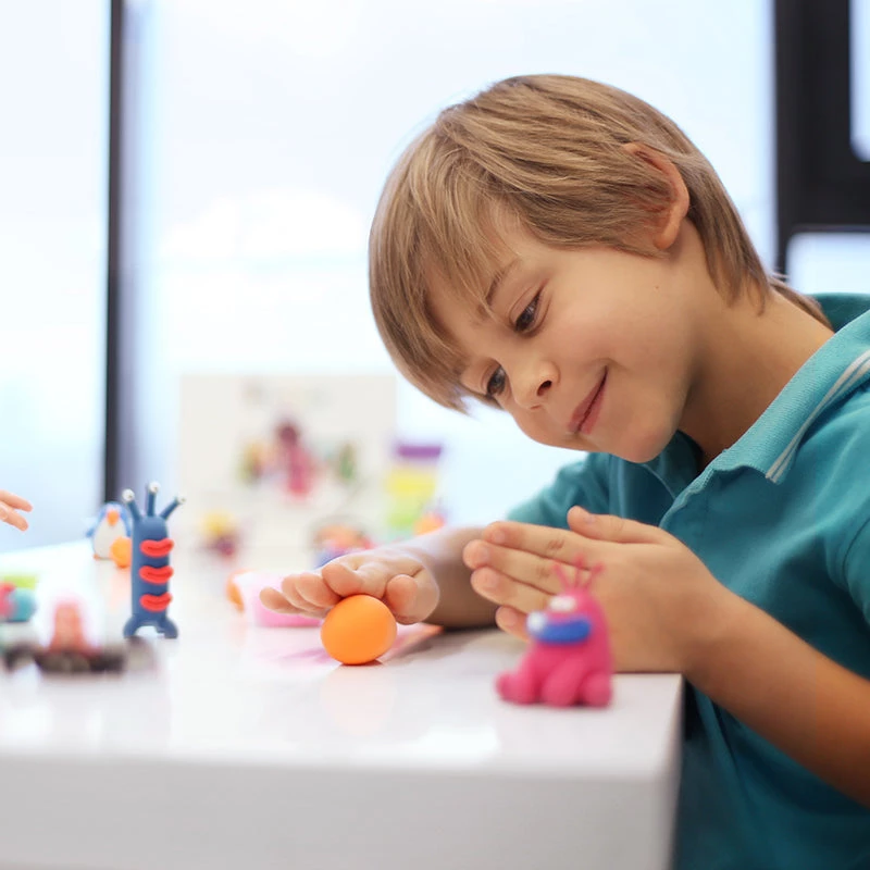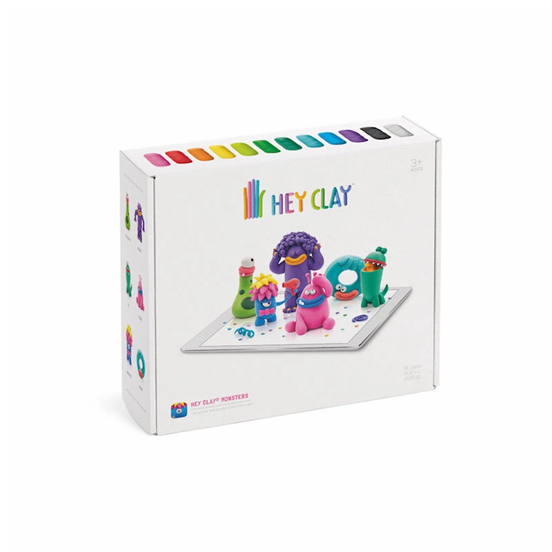 Become a professional clay artist! The 18 included cans of clay are soft, lightweight, non-sticky, nontoxic, and stain-free โ Perfect for young artists taking their first step into the magical world of clay creativity. The fun starts once you download the free app and gain full access using the promo code included in the box. Pick one of the six monster characters โ Terry, Hipster, Pi, Cyclops, Bigwig, or Donut. Then, follow along with the interactive 3D step-by-step instructions to masterfully mold it, one simple shape at a time. As kids create, they learn useful techniques โ rolling spheres, cylinders, facial features, textures, and more โ until pretty soon, they canโt wait to invent their own characters! Jumpstart your young artistโs new career with the ferociously fun Hey Clay Monsters set. Includes 18 cans of modeling clay (0.7 ounces each) in various colors. The app is available at the Apple App Store and Google Play. Ages 3 years +