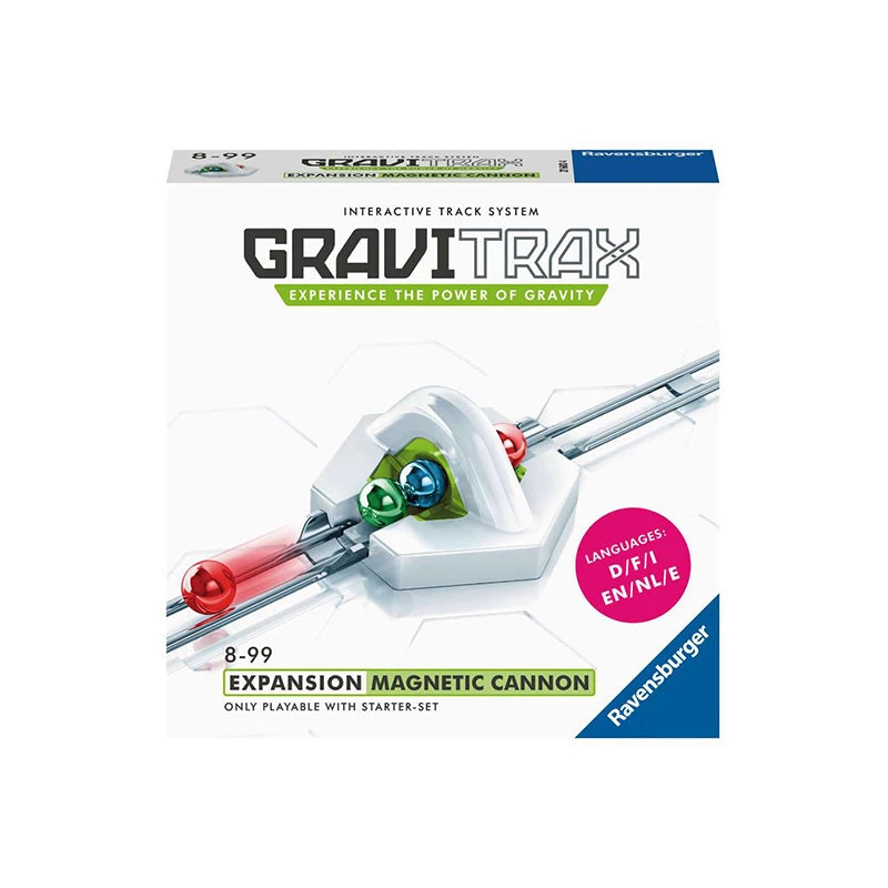 The GraviTrax track system can be extended indefinitely with extra track packs and add-onβs β each sold separately. This set is suitable for 1+ players, ages 8 years and up. Set includes 1x Magnetic Cannon, 3x Gravity Spheres.