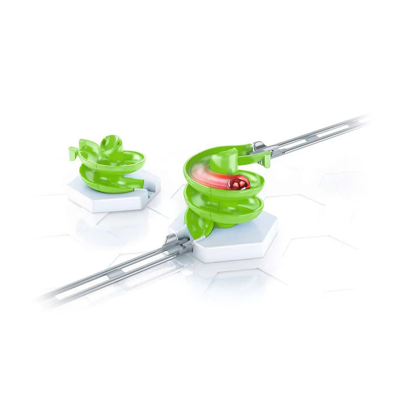 Experience the power of gravity! GraviTrax is the all Contruction toy STEM track system from Ravensburger! Use your imagination to build superb tracks and set the gravity spheres rolling! Leap Ahead! Use the Trampoline to defy gravity, gain momentum, and bounce your marble through the track. Combine the Trampoline with the GraviTrax Starter-Set to add an exciting challenge to your marble run. How far and high will your marble bounce from the Trampolines?
