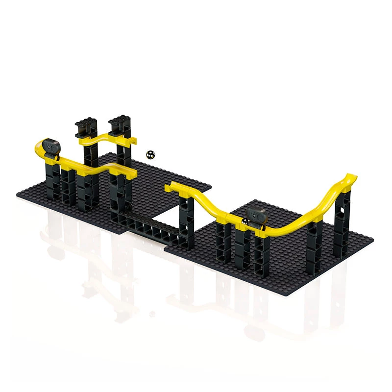The Hubelino Pi marble run system is designed for older children. Pi combines daring physics tricks with creative construction fun. The fascination of constructing tricky marble run racetracks is only topped by the high speed and action-packed tricks and stunts of the steel marble. And best of all, Hubelino Pi is fully compatible with other building bricks, figures and theme worlds.