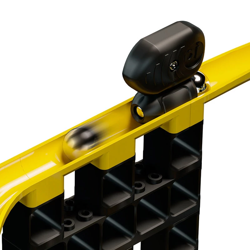 The exciting Gauss cannon mechanism repels the opposing steel marble forward and onward at great speeds. You can reposition the cannons wherever you’d like on the track.