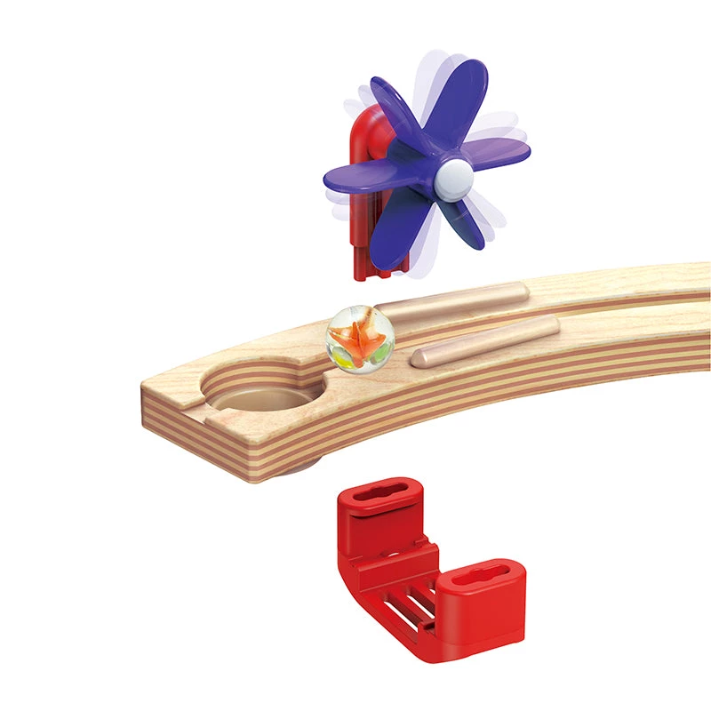 Get closer to the Quadrilla action with three gutters that make your marbles race around the outside of the colored blocks on their way to the bottom. Looks cool and extends run-time. STEM.