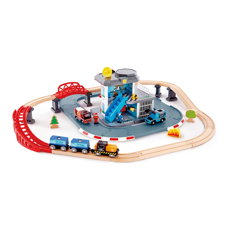 Keep the roads and railways safe with this emergency services set. Features police and fire brigade headquarters and vehicles.