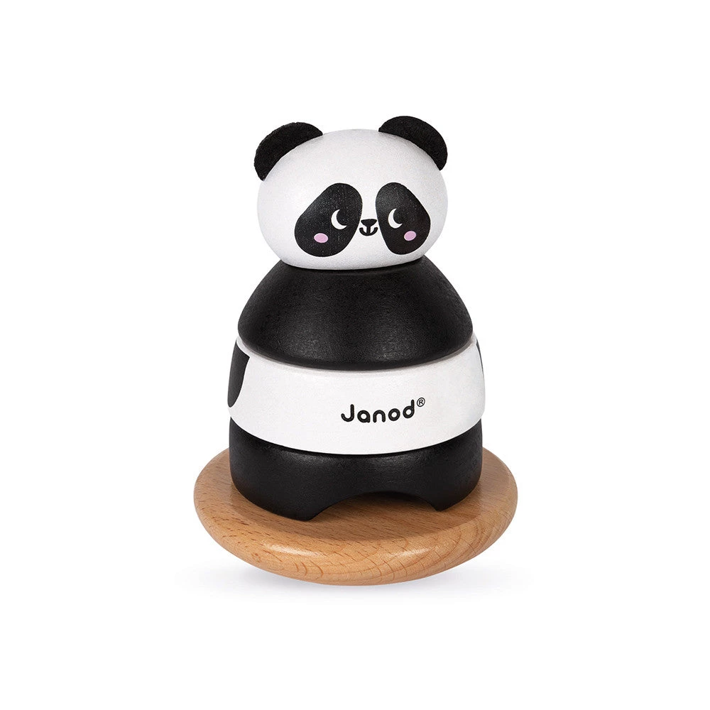 A nice little panda to recompose by stacking the different wooden pieces to get a nice tumble. The small ears are made of felt. Water-based paints.