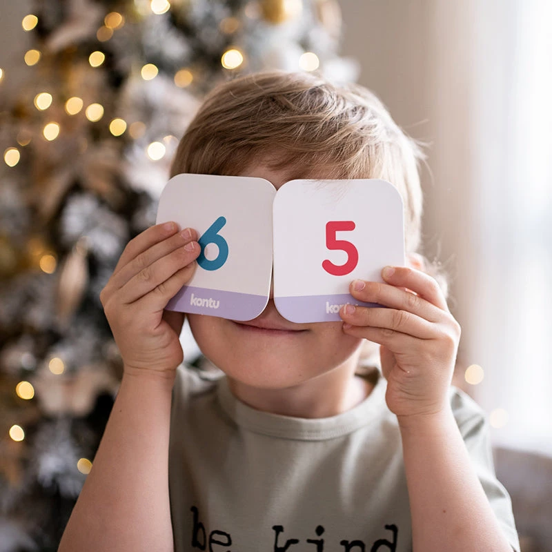 Each kit includes number cards (0-10), activity cards (8), and a card stand.
