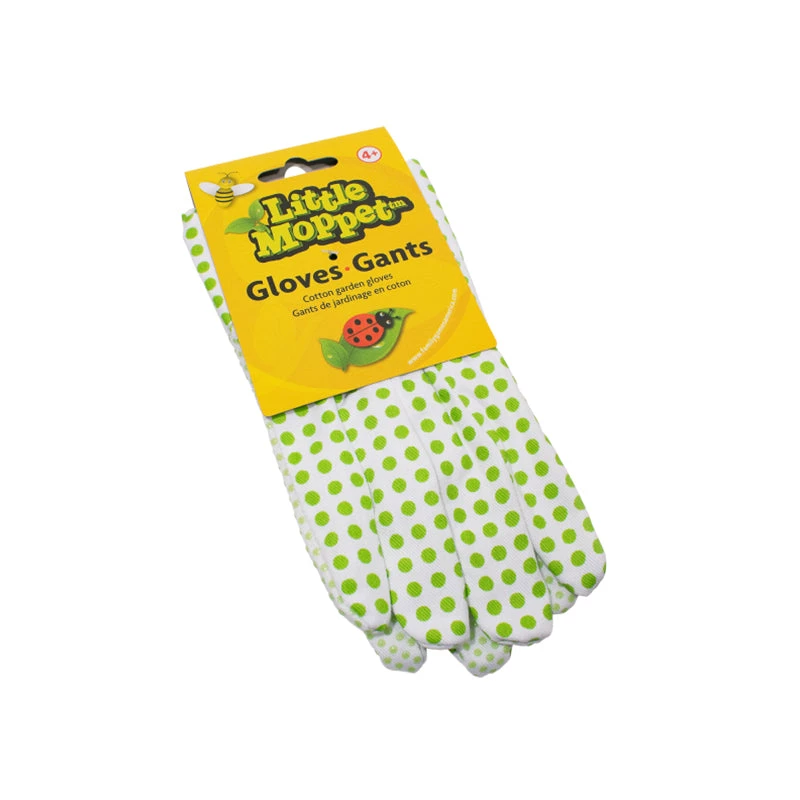 Little Moppet polka-dot Garden Gloves help protect small hands from sharp sticks and muck and grime. They are durable, washable and available in red, green and blue.