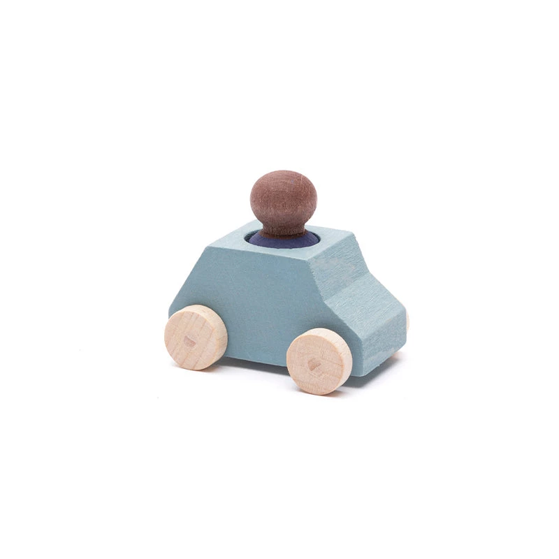 This little grey wooden toy car comes with a blue wooden figure which can be taken out of the car. Perfect as addition to your Lubu Town construction sets, but also a nice little present on its own.