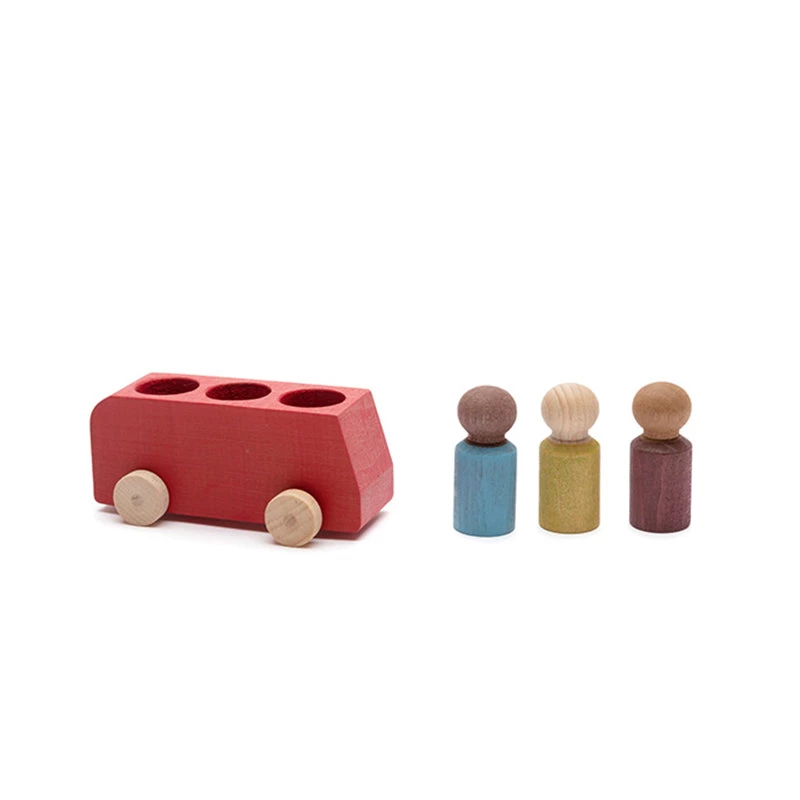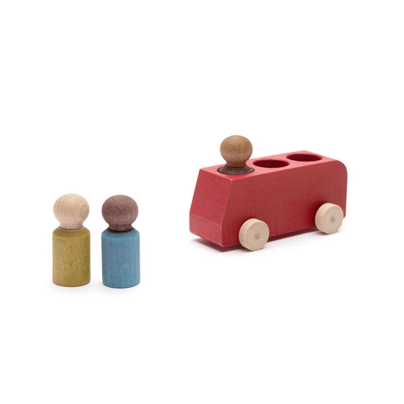 Ready to get on the bus and go for a ride around town? The Lubu buses offer space for one driver and two passengers and come with three wooden figures. The red bus comes with a blue, lime green and plum colored figure.