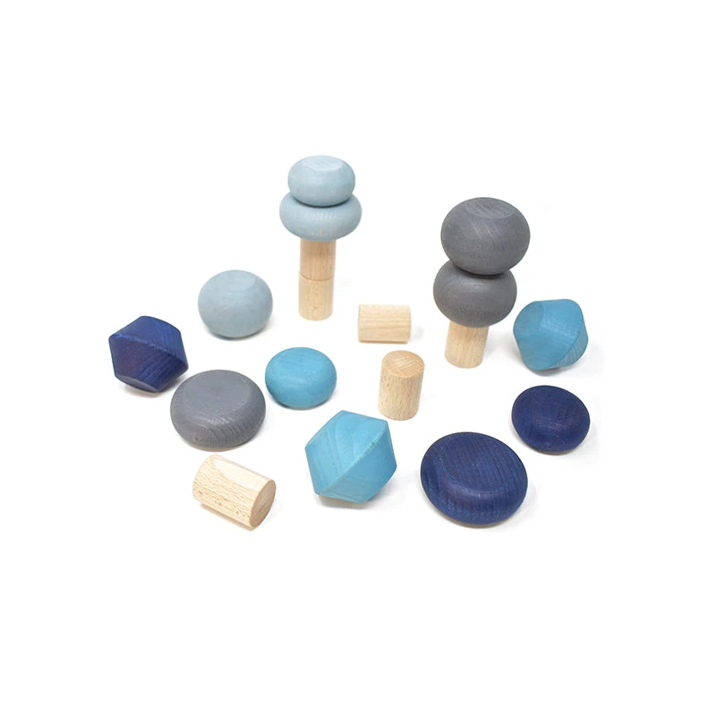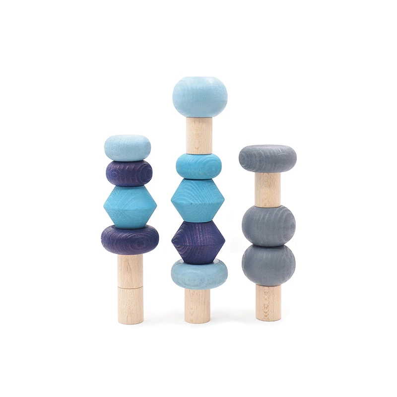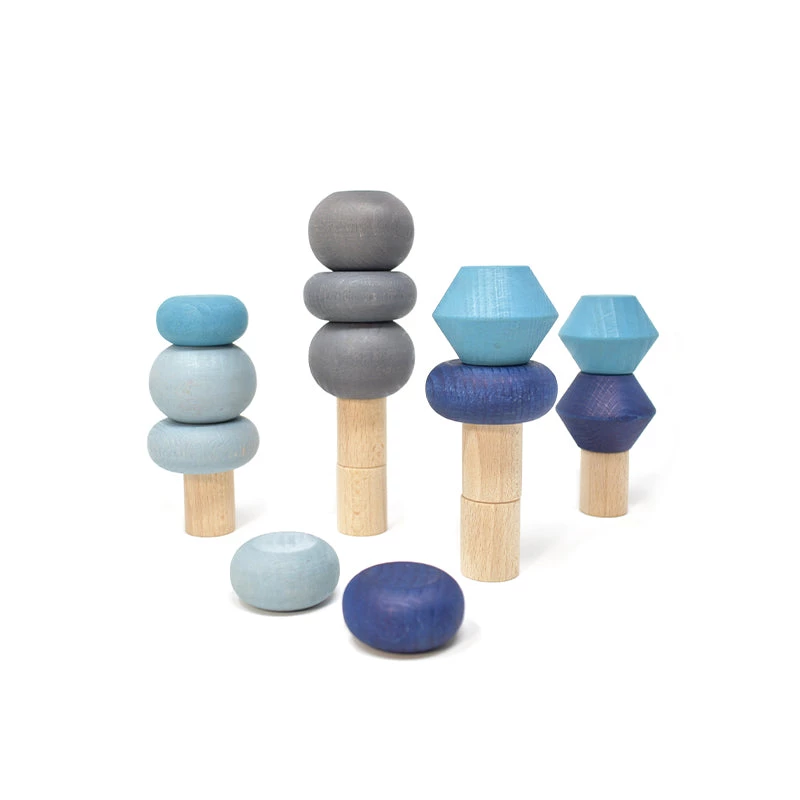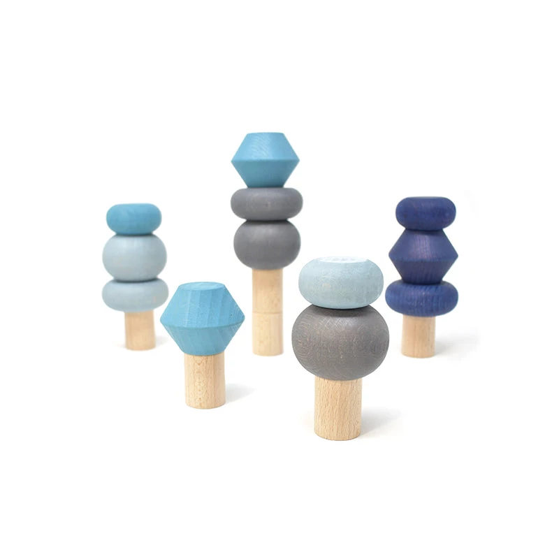 This set of stacking trees comes with 18 high quality beech wood pieces. You can build your own little forest or play around and create imaginative columns, sculptures or whatever you feel like. There are 6 natural wood pieces that can be used as trunks and 12 tree tops in different shapes and different colors. A great open-ended balancing toy to practice fine motor and concentration skills and a lovely addition to our Lubu Town houses and cars. Apart from the Autumn Trees there are also Spring, Summer and Winter Trees as well as an All Seasons Set.
