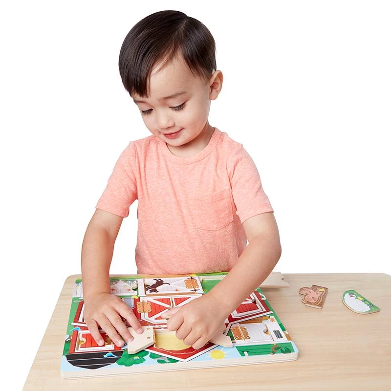 Here a chick, there a chick…behind each of the 9 hinged doors on this charming barnyard scene is a delightful, magnetic animal. Learning about animals while improving memory and fine motor skills will keep children busy and having fun on the farm for hours!