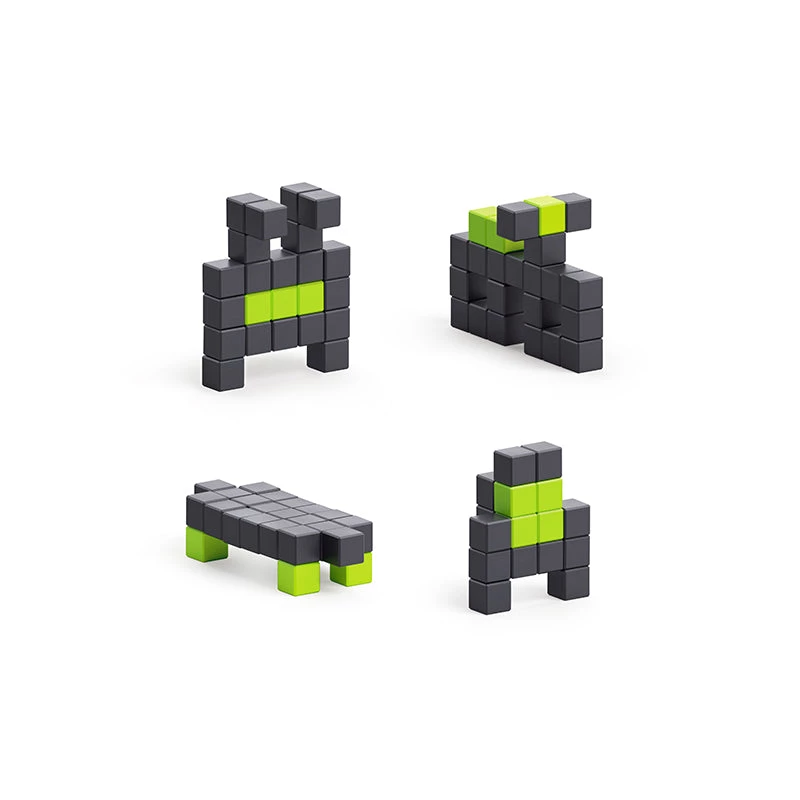 PIXIO is a unique construction set in which magnetic blocks are connected thanks to a well-thought-out system of magnets. One PIXIO block is a plastic cube 8 mm (0.31 in) in size and has inside 6 magnets. Blocks can be connected to each other in any sequence from different sides.