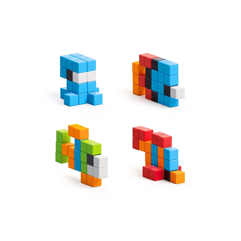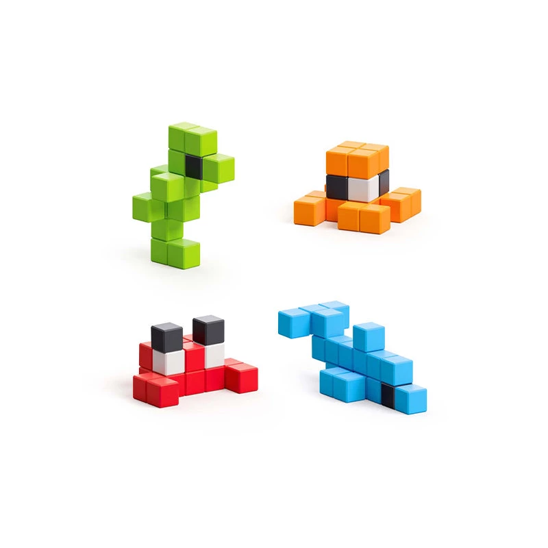 PIXIO is a unique construction set in which magnetic blocks are connected thanks to a well-thought-out system of magnets. One PIXIO block is a plastic cube 8 mm (0.31 in) in size and has inside 6 magnets. Blocks can be connected to each other in any sequence from different sides.
