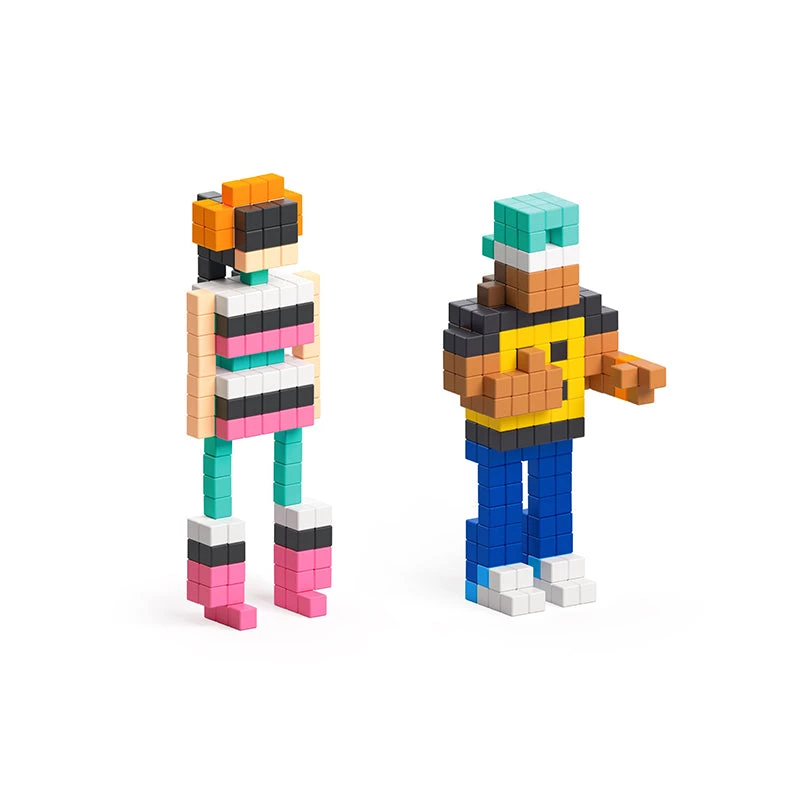 Dress your human characters in cool outfits to suit their style. Spice up your storylines. Build a hipster girl with ice cream with 147 PIXIO blocks, then use another 120 to build her a T-Rex. In the world of PIXIO®, taking walks with dinosaurs is in style.