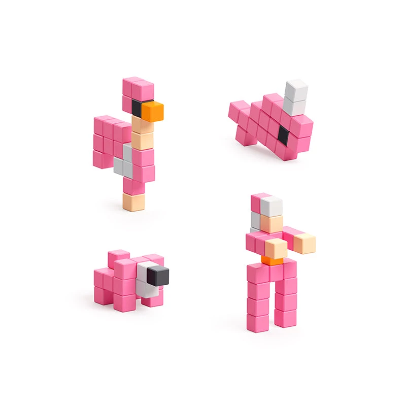 Youβll get 24 PIXIO blocks in 5 colors to put together pink birds, flowers, and mythical animals. Dreaming of a unicorn? Bring it to life by building it out of PIXIO blocks!