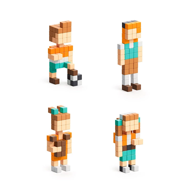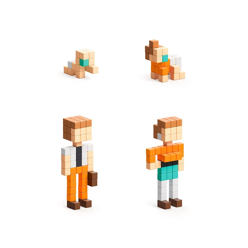 Youβll have 88 PIXIO blocks in 7 colors to create a mom, dad, older sister and brother, grandfather, little dog, and even yourself. Send your sister to school, walk the dog, or kick a soccer ball to your brother. Grab your PIXIO blocks and build a happy household.