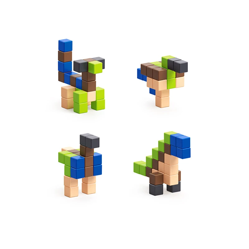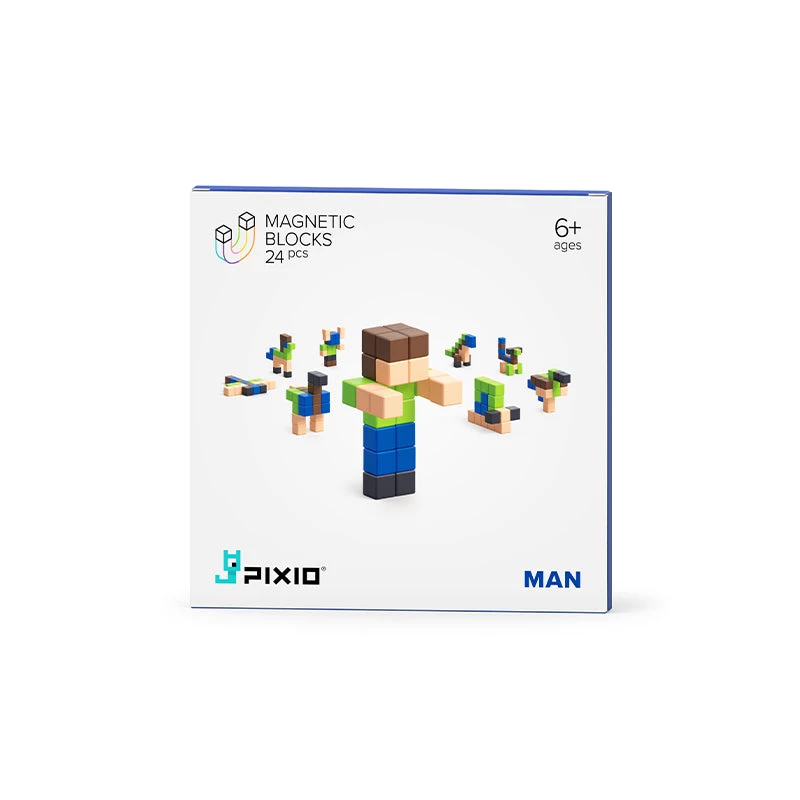 PIXIO is a unique construction set in which magnetic blocks are connected thanks to a well-thought-out system of magnets. One PIXIO block is a plastic cube 8 mm (0.31 in) in size and has inside 6 magnets. Blocks can be connected to each other in any sequence from different sides.