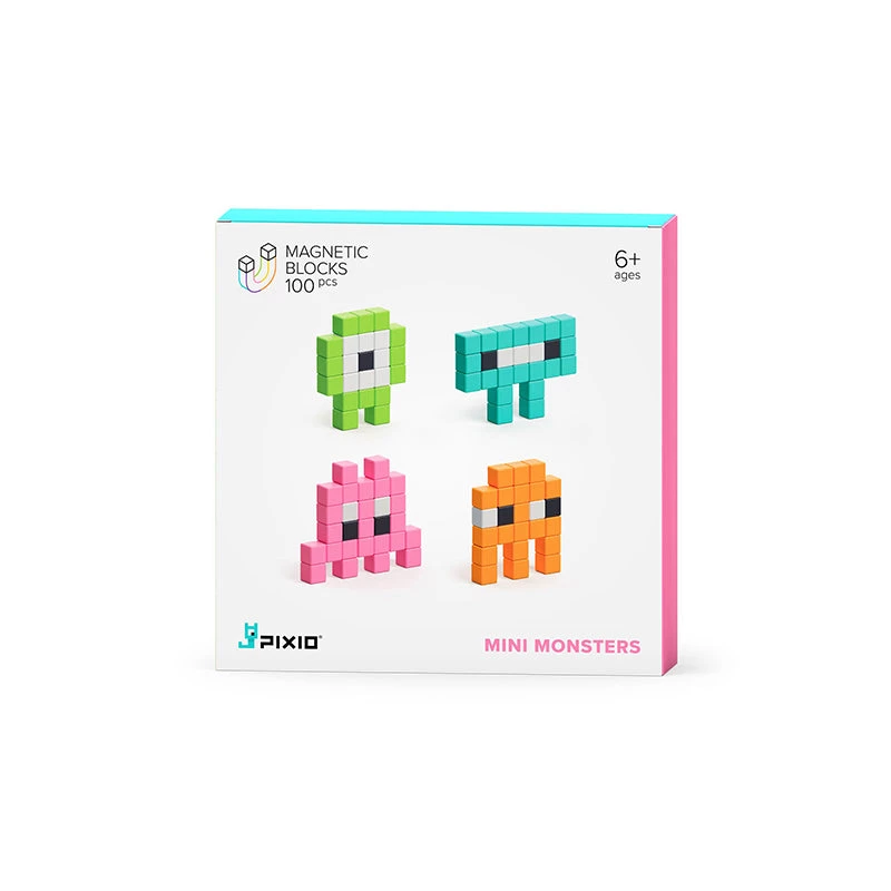 Youβll get 100 PIXIO blocks in 6 colors to create a ghost and say, βIt’s alive!β Bring to life 4 monsters – Pin, Frogz, Iz, and Pampz – then take them apart to create new characters, like Beez, Cran, Shuttlz, Lipz, Doss, or Crabb. Rebuild, rename, and reinvent your monsters: youβre now a PIXIO monster master.