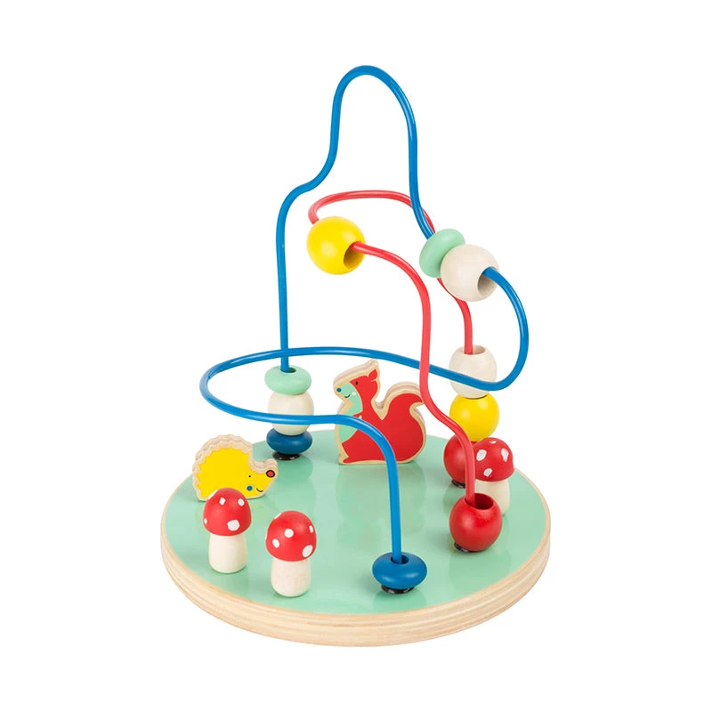 Your childΒ΄s motor skills development is supported by the animals of the fields and forests on this wonderful bead rollercoaster. Squirrel, Hedgehog, and Co. are found on the wooden base and can move all around.Β