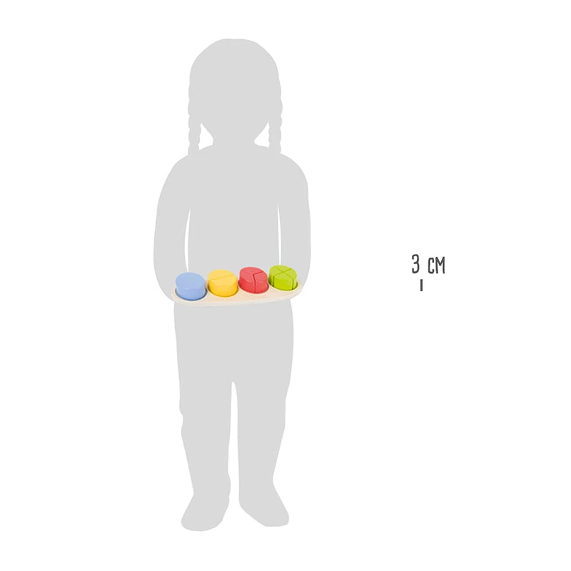 This learning game made of FSC® 100%-certified wood is really something special! With it, young math whizzes can learn about geometric figures in a playful way. The large cylinder is divided into smaller and smaller pieces which then must be sorted into the correct shape and colour. A tricky puzzle that requires concentration and fine motor skills.