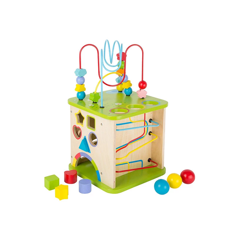 The game world of the little ones is very big! Many wonderful playtime ideas are brought together in this stable wooden cube – in addition to shapes for inserting and a string threading game, there is a marble run, a coordination game to learn numbers, and a wall of gears integrated into the cube. The entire set intensively trains motor skills and understanding of shapes, colors, and physics – but is also a lot of fun! The blocks and balls that are inserted into the cube can be retrieved through a small door in the bottom – and then put back in again. This motor skills cube is a great all-rounder for active young researchers who want to discover the world around them.