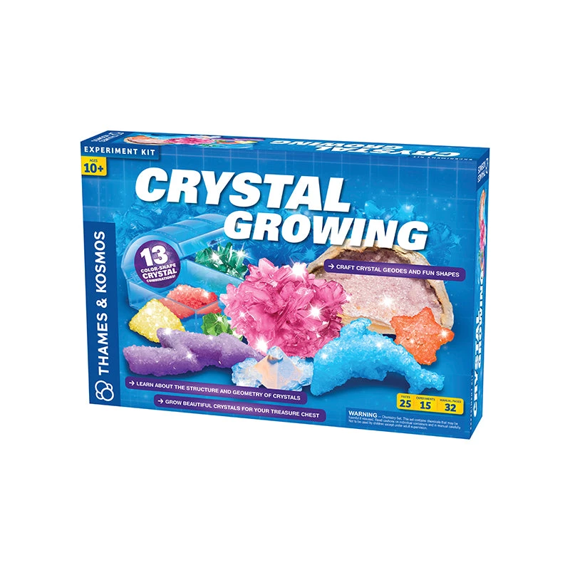Grow dozens of dazzling crystals and conduct 15 illuminating experiments with this classic science kit. Experiment with four chemically different crystals each with different properties, including potassium alum crystals that form regular octahedrons, rapidly growing sodium sulfate crystals, long needle-shaped sodium acetate crystals, and plaster which is made from gypsum crystals.