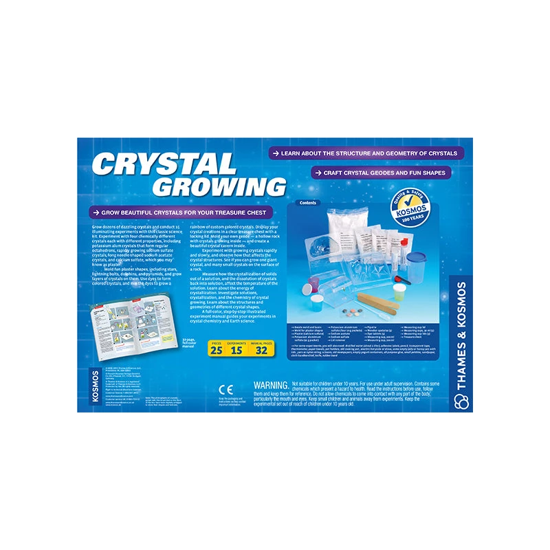 This kit is thoroughly tested and safe: Over one million units of this kit have sold worldwide. A full-color, 32-page experiment manual guides your experiments in crystal chemistry and Earth science.