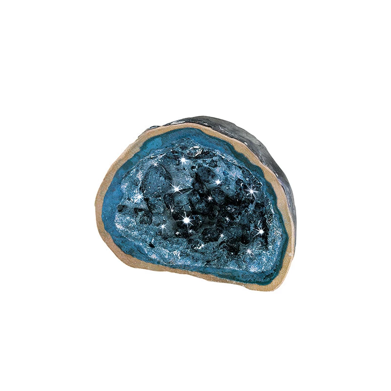 Mold fun plaster shapes, including stars, lightning bolts, dolphins, and pyramids, and grow layers of crystals on them. Use dyes to form colored crystals, and mix the dyes to grow a rainbow of custom colored crystals. Display your crystal creations in a clear treasure chest with a locking lid. Mold your own geode — a hollow rock with crystals growing inside — and create a beautiful crystal cavern inside.