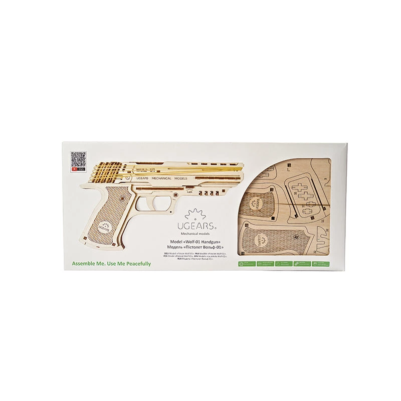 UGears presents a new unique item for your collection of wooden models – loaded with fun, aimed at positive emotions, the Wolf-01 mechanical handgun.
